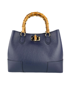 Janie Large Navy Leather Handbag with Bamboo Handles