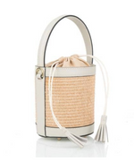 A take on warm-weather style, this structured raffia bucket bag is finished with luxe off-white leather trim and a sleek crossbody strap. Lightweight, polished, and versatile—it’s the bag you’ll reach for all season.